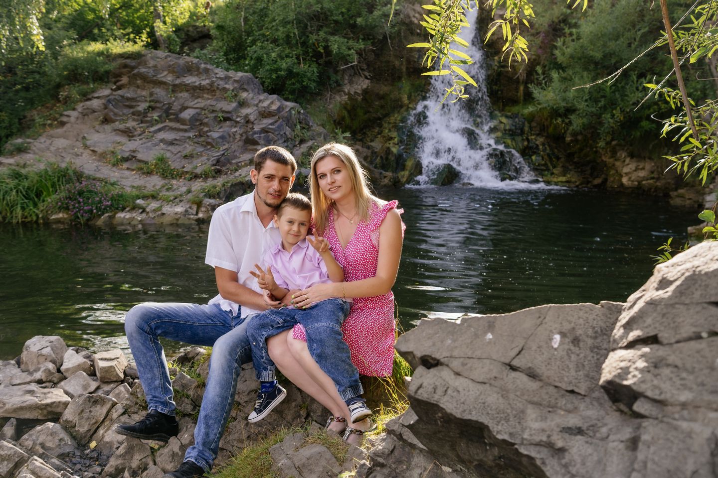 Семья у водопада